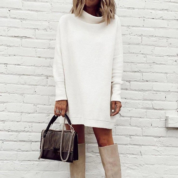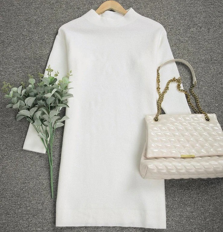 Neckline: Mock Neck; Sleeve Length: Long Sleeve; Dress Length: Mini; Pattern Type: Plain; Cotton/Acrylic; Silhouette: Shift; Machine Washable.