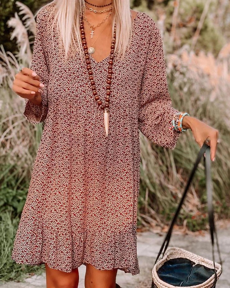 Hold tight to the memories you make in this cute, breezy playful. For summer vacation or autumn apple picking, this breathable, playful dress is a smart and simple option. Styled with a V-neckline, wide bracelet sleeves and a ruffled hem, you can slip it on and look pulled together instantly. Best all, the dress goes with everything from sky-high wedges to cowboy boots to classic sneakers. Deep V-neck; Long Sleeve; Mini Length; Print; Shift Silhouette; 40% Elastane, 60% Rayon; Hand Wash Cold.-Due to the different display and different light, the picture may not reflect the actual color of the item. Thanks for your understanding.