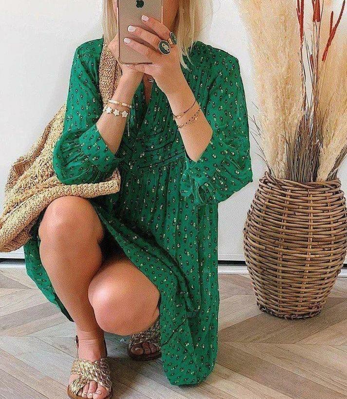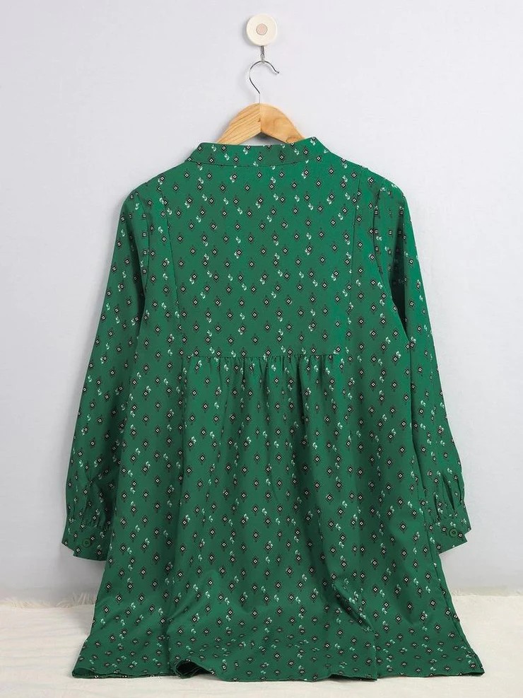Vintage meets modern day on this emerald green foulard-print dress that’s perfect for work to weekend. The mini shirtdress has a classic A-line finish keeping the drama on the top with details like angled topstitching and feminine gathers. We love it with mod white booties. Neckline: V-Neck; Sleeve Length: Long Sleeve; Dress Length: Mini; Pattern Type: Print; 40% Elastane, 60% Rayon; Machine Washable; Loose-fitting.