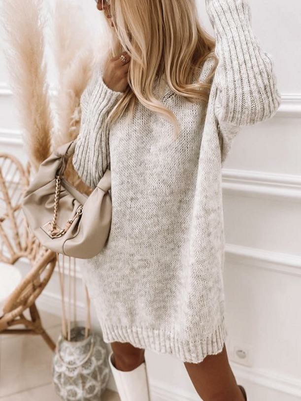 V-neck; Sleeve Length: Long Sleeve; Pattern Type: Plain; Dress Length: Mini; Silhouette: Shift; Cotton/Acrylic; Machine Washable.