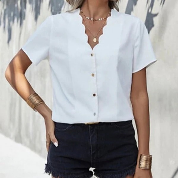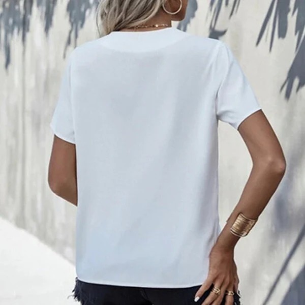 Neckline: V-neck; Sleeve Length: Short Sleeve; Pattern Type: Plain; Material: 35% Elastane, 65% Rayon; Machine Washable.