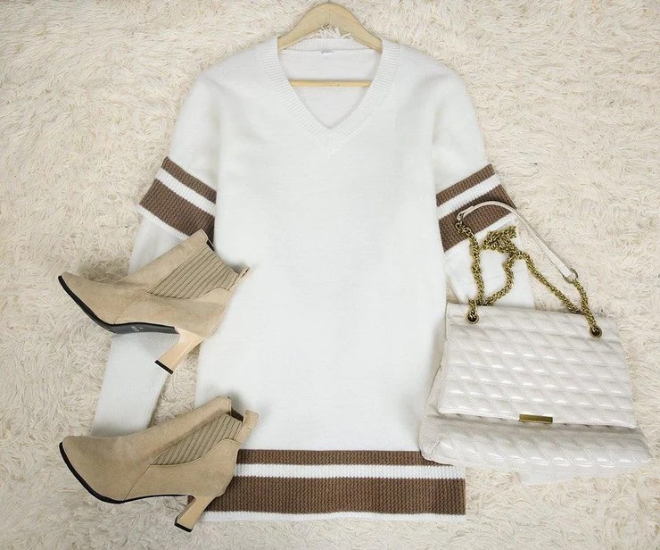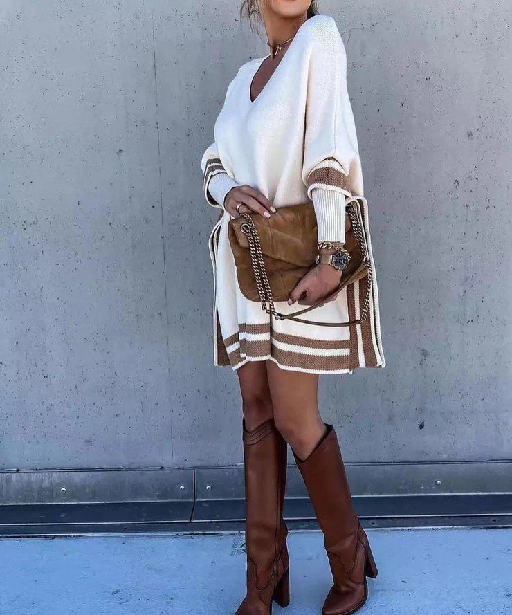 Neckline: V-neck; Sleeve Length: Long Sleeve; Dress Length: Mini; Pattern Type: Print; Silhouette: Shift; Cotton/Acrylic; Machine Washable.