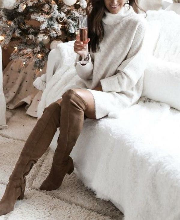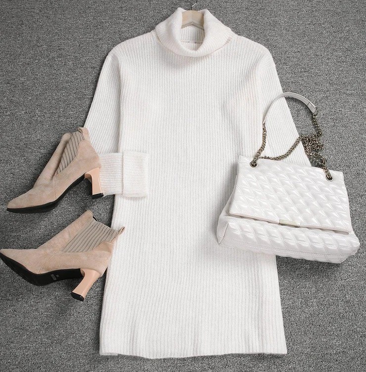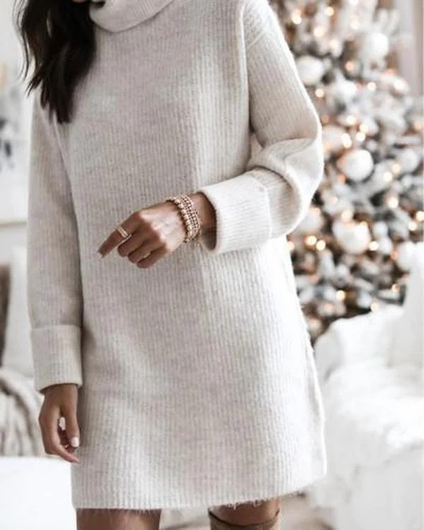 Neckline: High Neck; Sleeve Length: Long Sleeve; Dress Length: Mini; Pattern Type: Plain; Relaxed Fit; Machine Washable.