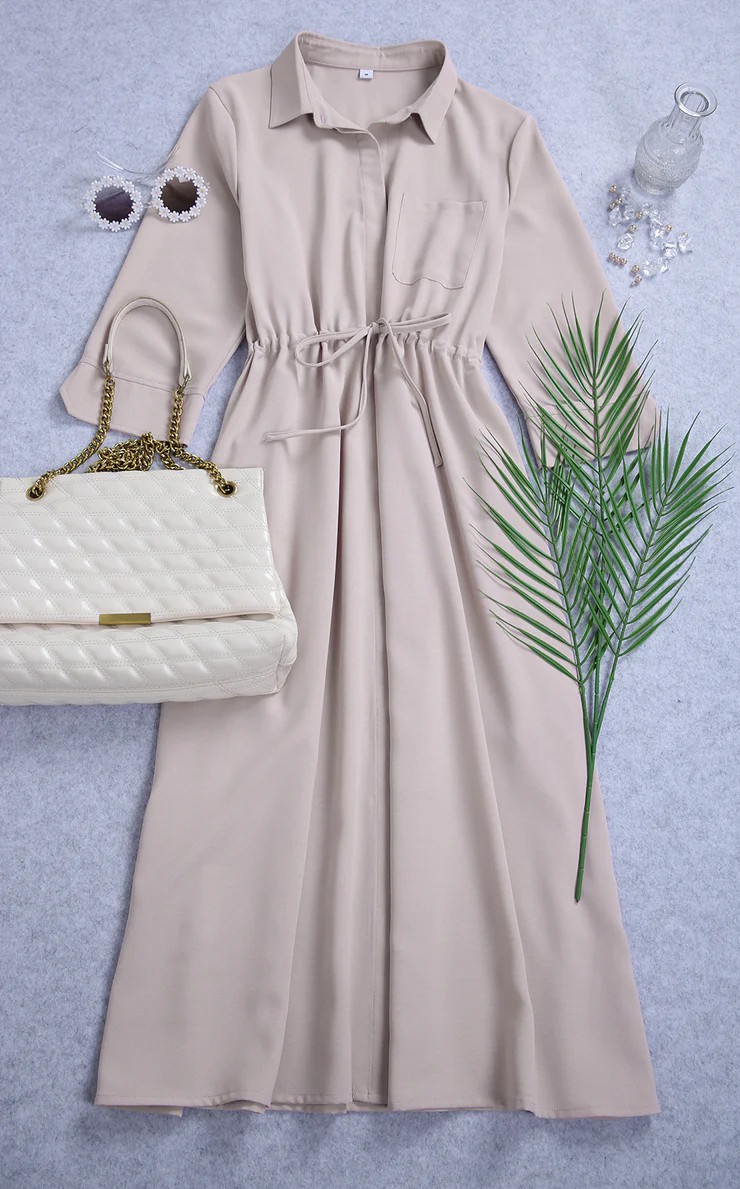 Neckline: Collared; Sleeve Length: 3/4 Sleeve; Dress Length: Midi; Pattern Type: Plain; Silhouette: A-line; 40% Elastane, 60% Rayon; Machine Washable.