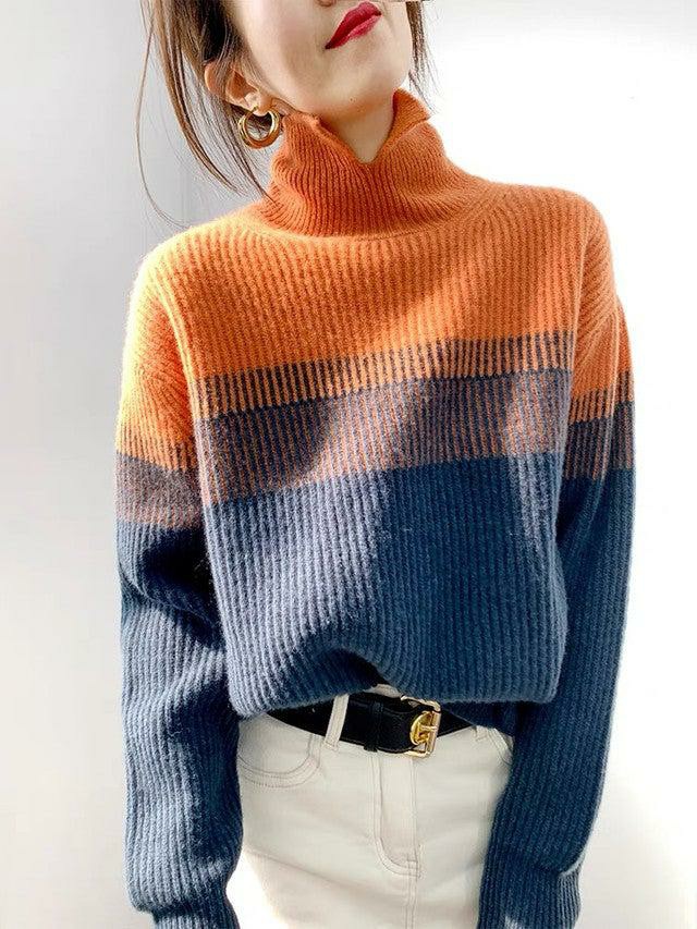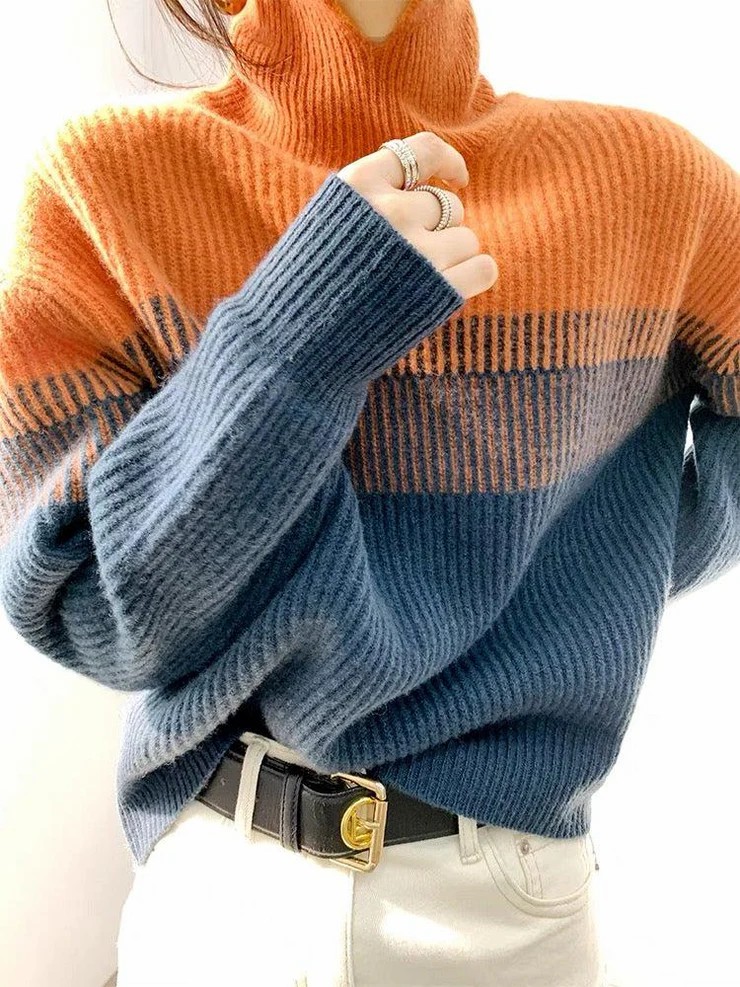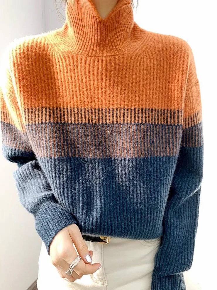 • Trendy High Neck Color Block Sweater