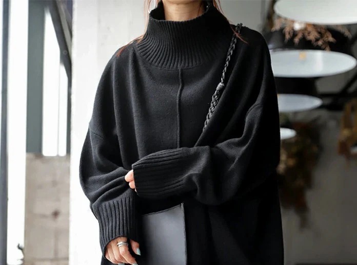 Neckline: High Neck; Sleeve Length: Long Sleeve; Pattern Type: Plain; Relaxed Fit; Cotton/Acrylic; Machine Washable.