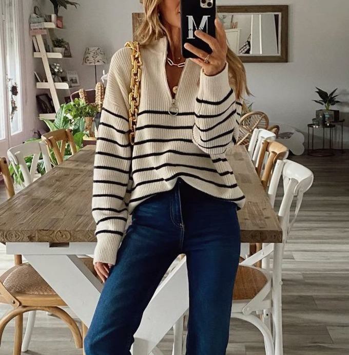 • Casual Striped Black and White Pullover