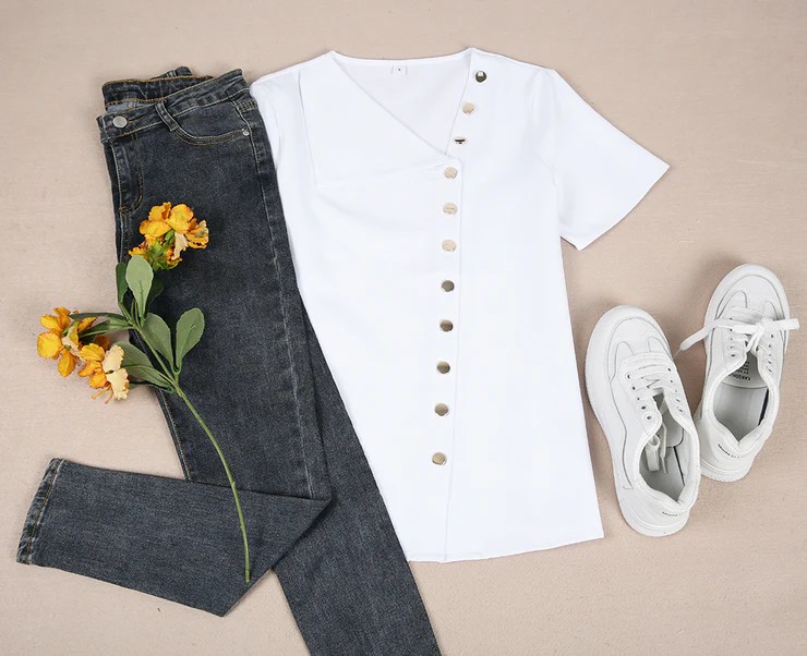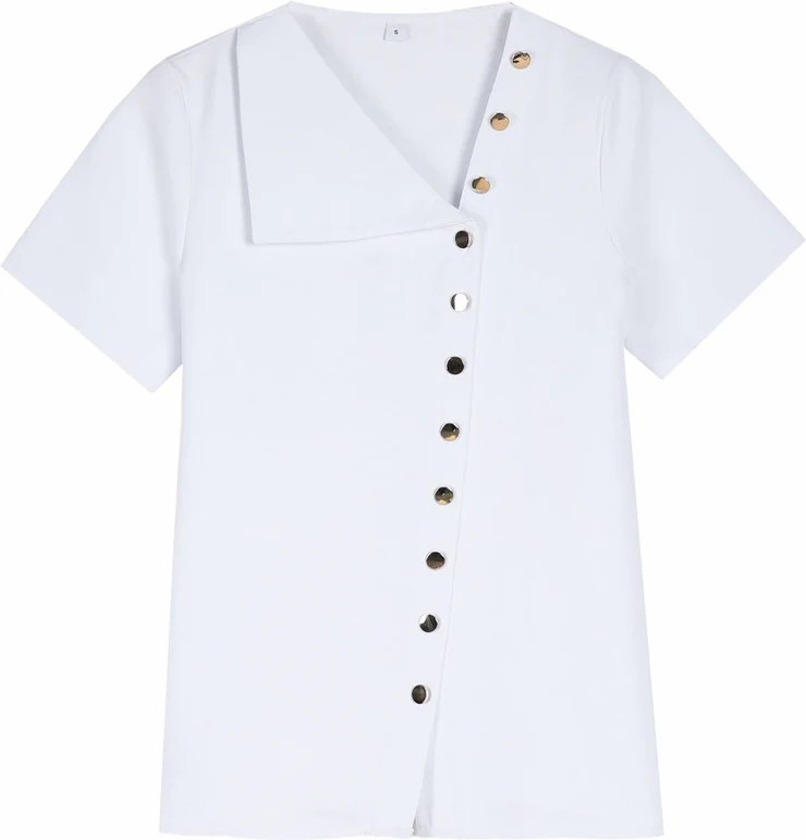 Sleeve Length: Short Sleeve; Pattern Type: Plain; V-neck; 65% Cotton, 35% Elastane; Machine Washable.