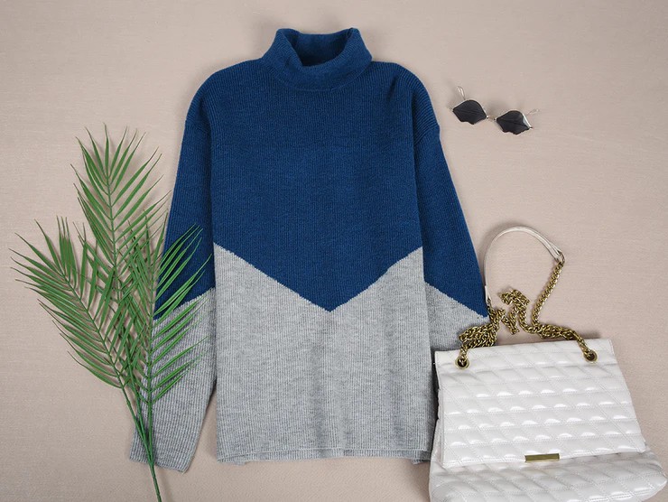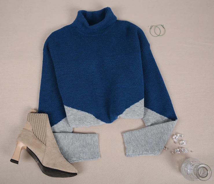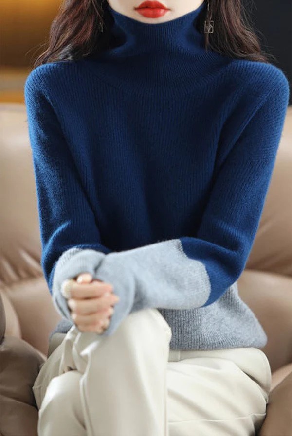 Neckline: High Neck; Sleeve Length: Long Sleeve; Pattern Type: Color Block; Machine Washable; Cotton/Acrylic.