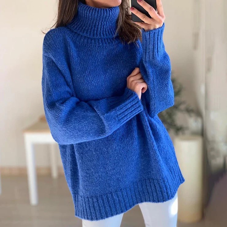 Neckline: High Neck; Sleeve Length: Long Sleeve; Pattern Type: Plain; Shift Silhouette; Slightly Stretchy; Ribbed Edges; Relaxed Fit; Hand Wash Cold or Dry Clean.