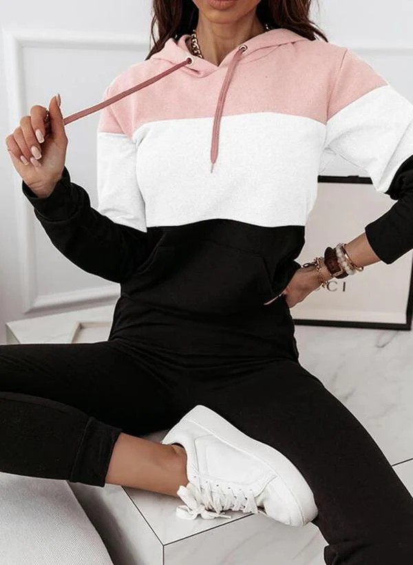 Neckline: Hoodie; Sleeve Length: Long Sleeve; Pattern Type: Color Block; 65% Cotton, 35% Elastane; Machine Washable; Relaxed Fit.